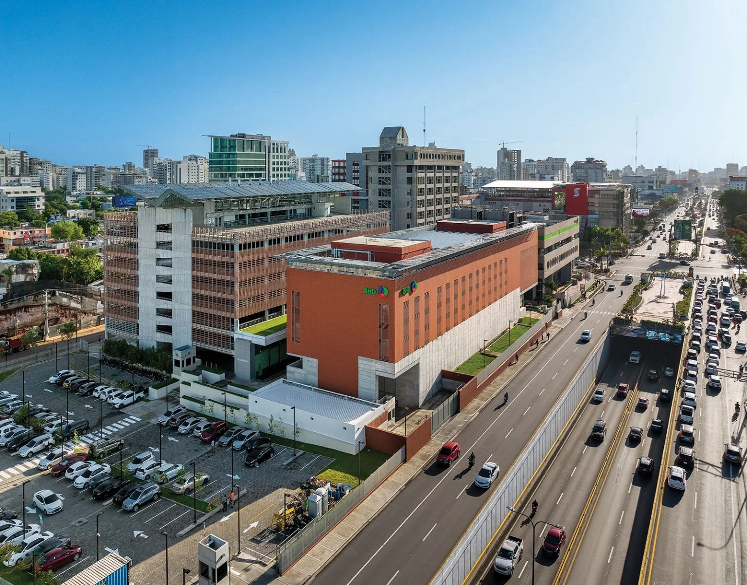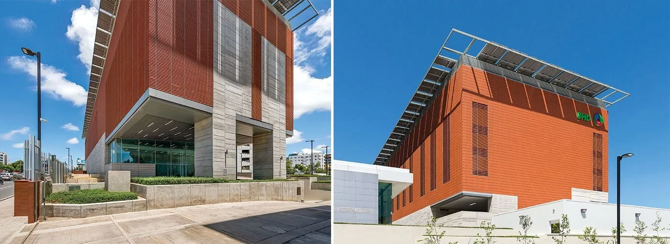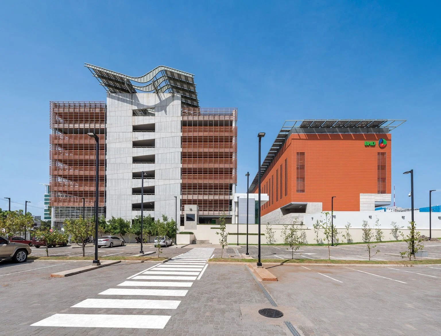 “Las nuevas edificaciones, de marcado acento contemporáneo, dialogan con las preexistentes: Edificio BHD (1980) y Torre BHD (1985), hitos de la arquitectura dominicana. Gracias a un planteamiento de consolidación de manzana y tratamiento urbano sensible se logra un conjunto interesante que sobresale por sus aspectos formales y estéticos. Cuarenta años después de los dos primeros edificios, que tienen el hormigón visto como protagonista, la nueva plástica volumétrica impone un nuevo material en el discurso tectónico: la terracota, con la que se obtiene una armonía por contraste y una expresión arquitectónica contemporánea. Los nuevos edificios fueron concebidos con un enfoque hacia la sostenibilidad y la incorporación de energías renovables como un emblema de identidad corporativa.