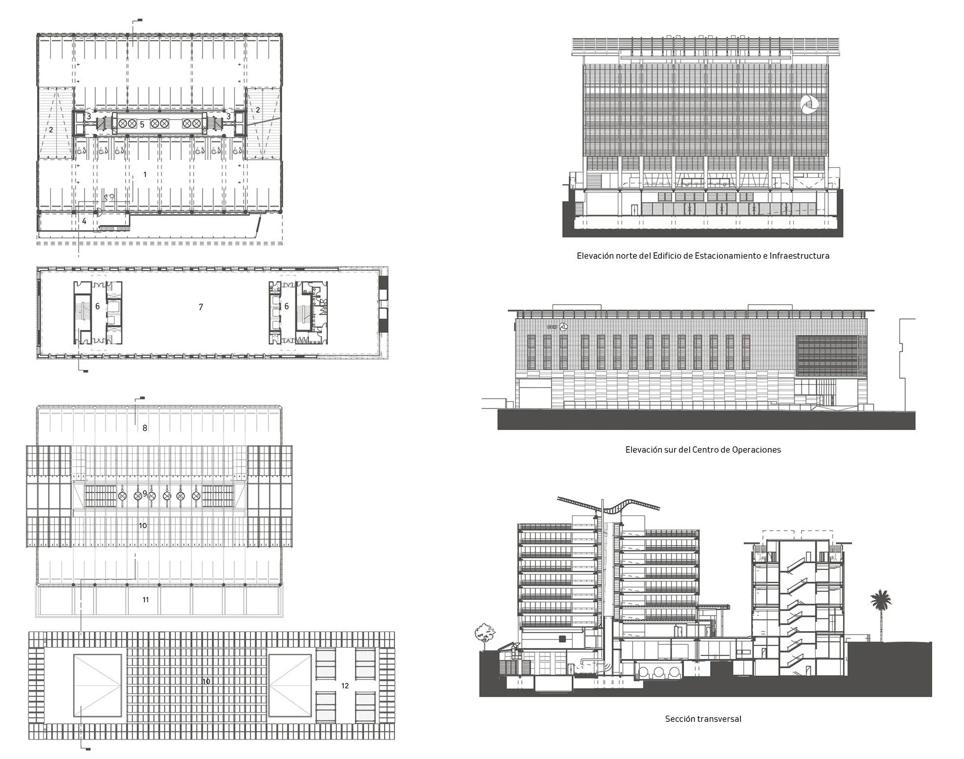 Es así como el edificio de estacionamiento es más que eso, es el receptáculo de la infraestructura técnica de toda la manzana. En el sótano se alojan la generación eléctrica y la de climatización, un reservorio de agua con capacidades para hacer clasificaciones típicas de una certificación medioambiental, además de previsiones para futuras expansiones tanto eléctricas como mecánicas.
